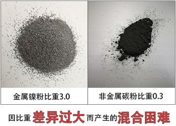 當粉體比重差異較大時就會出現輕、重粉不易混合均勻的難題。