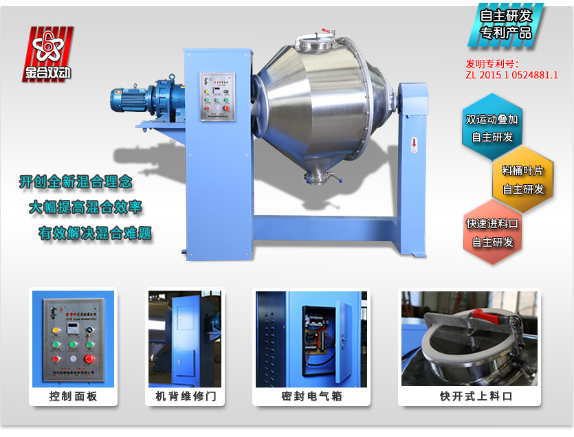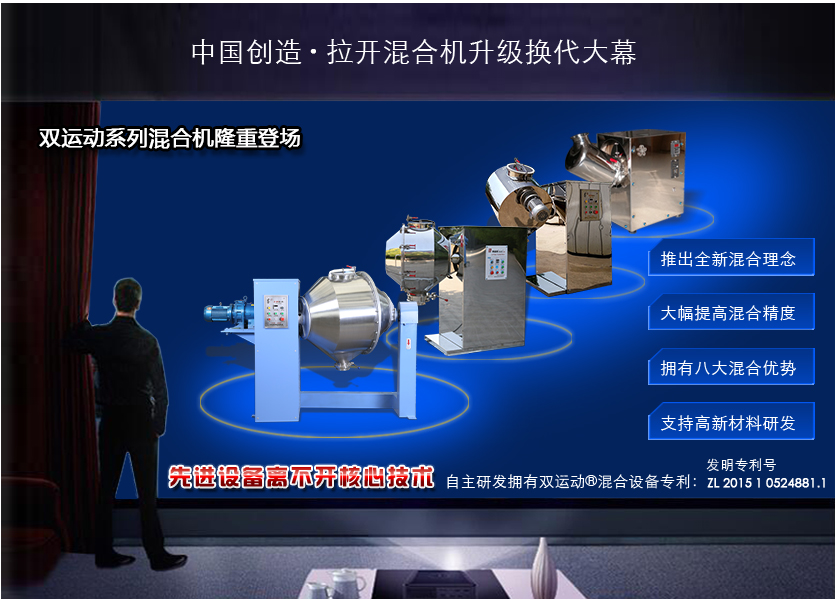 我們的設計團隊針對上述問題榮譽研發出雙運動混合機,其問世很好地解決了傳統混合機存在的各種缺點。雙運動混合機開創了全新的混合理念,大幅度提高混合效率!!!