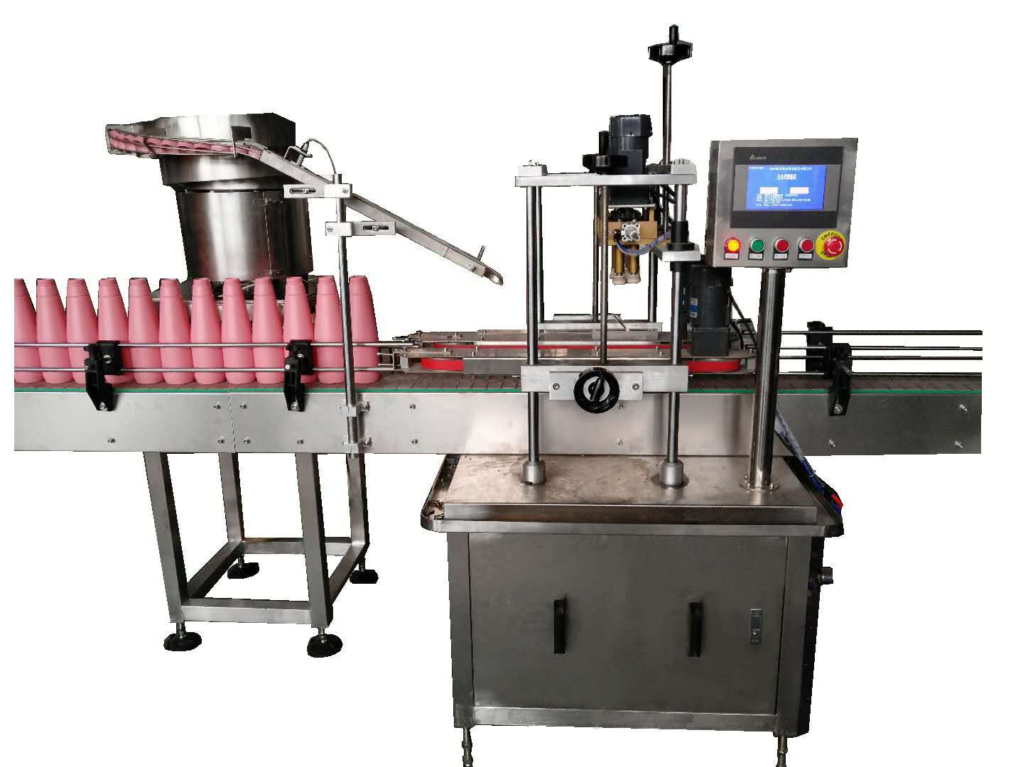 液體灌裝機:該機有灌裝、堵塞、鎖定等工序。主要用于大劑量輸液等小劑量溶液的在線生產,并可配有貼標機,形成理想的生產線。生產線設計合理,操作簡單,維護方便,完全符合新的GMP要求。